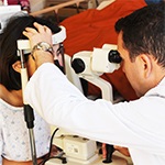 Caroline cuenta que hace 7 años jugaba con un perrito de peluche y accidentalmente lo pasó por su ojo originando una lesión, en esas condiciones fue a la piscina y el cloro del agua aumentó la lesión que terminó de agravarse con la administración de gotas contraindicadas. Su diagnóstico fue Leucoma, una mancha blanca que cubrió todo su ojo impidiendo totalmente la visión.