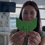 Las jornadas se desarrollan aproximadamente una vez al mes, y no siempre son iguales. Este martes trajo un “taller de origami”, especialmente enfocado a las edades de los menores que se encontraban realizando sus tratamientos al interior del Hospital. Sin embargo, en otras oportunidades las y los pequeños han elaborado fanzines, donde “expresan sus emociones y cuentan el proceso que van viviendo desde su mirada”, contó Carol.